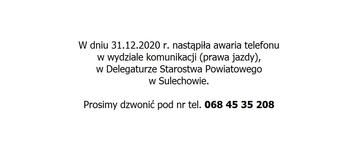 Awaria numeru - komunikacja - Delegatura Sulechów