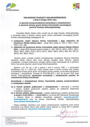OGŁOSZENIE STAROSTY ZIELONOGÓRSKIEGO