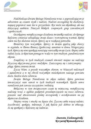 OGŁOSZENIE STAROSTY ZIELONOGÓRSKIEGO